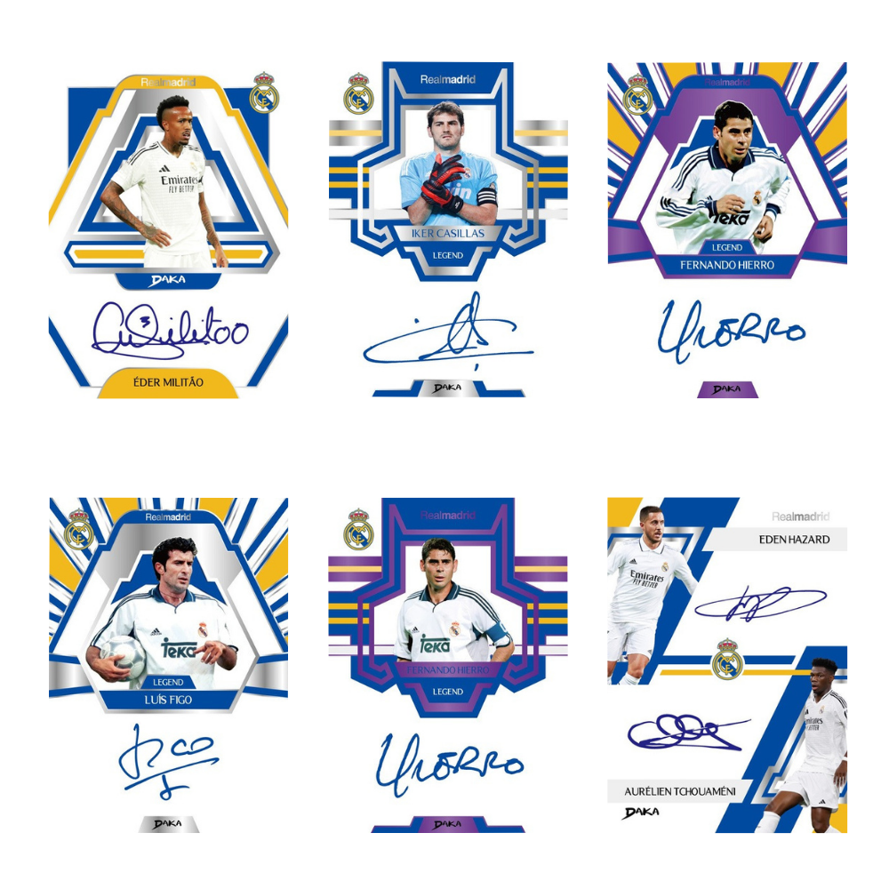 Celebrate the most successful club in the world with the Daka 2024–25 Real Madrid Set ONE & TWO Hobby Box. This collection lives up to the standards of “Los Blancos” by combining modern collecting with certified quality. Whether current Galácticos or immortal legends of the Bernabéu – this set brings them into your collection in a premium way.