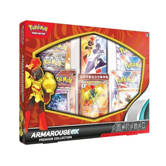 Træd ind i kampens hede med Armarouge ex Premium Collection! Denne premium boks giver dig ikke kun en fantastisk foil promo af Armarouge ex, men også alt, hvad du behøver for at styrke din samling og dit deck.