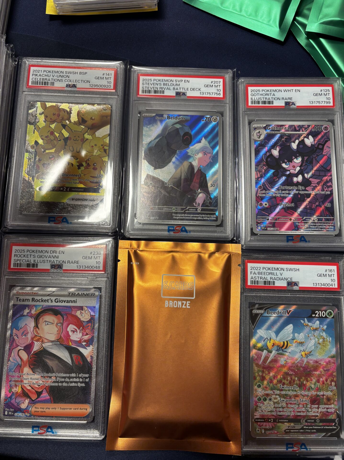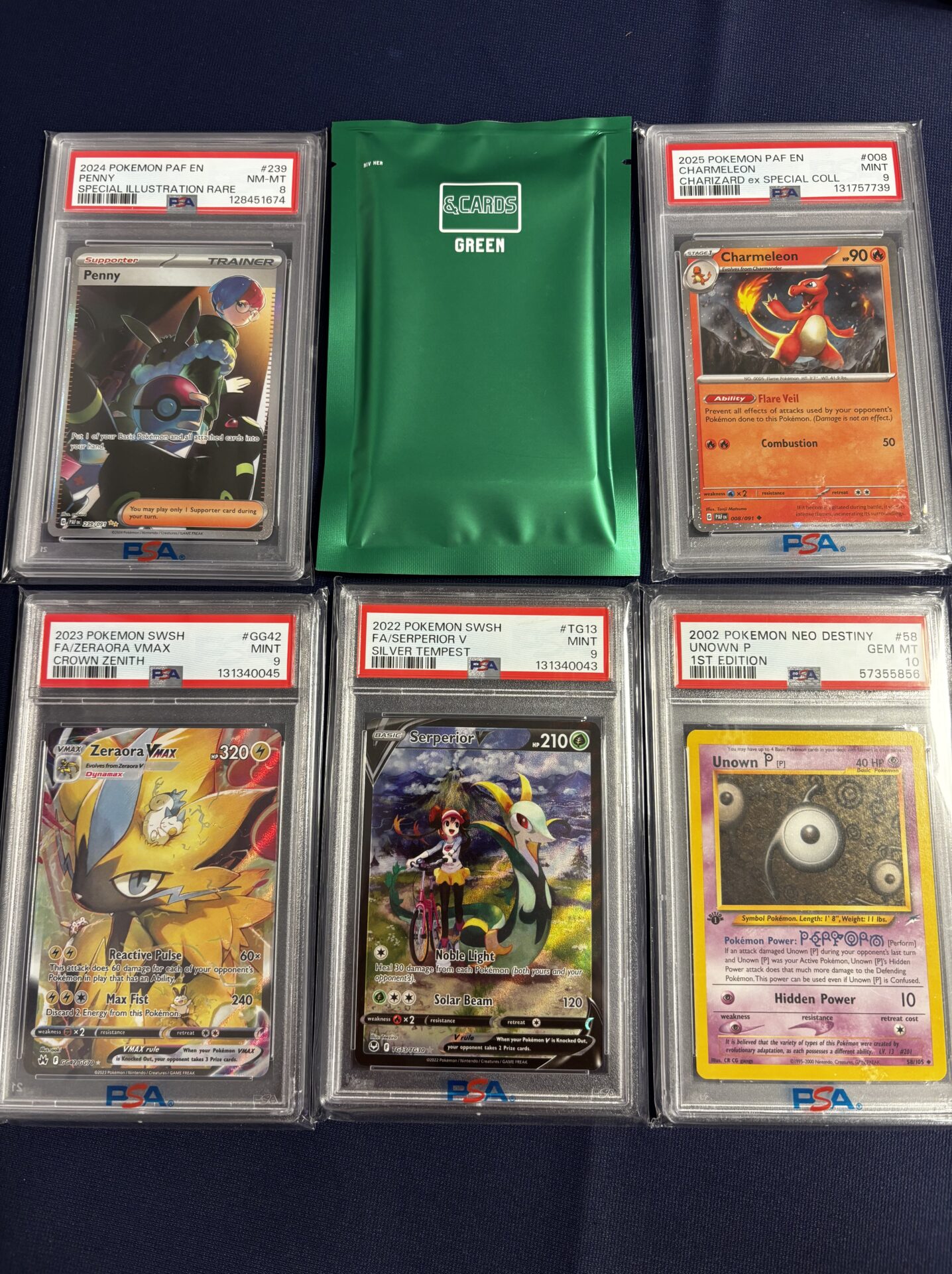 Alle PSA kort er engelske + 2 engelske booster fra enten: Journey Together, Destined Rivals, 151, Mega Evolutions, Phantasmal Flames & Silver Tempest